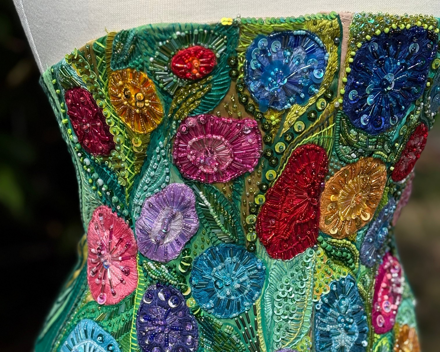 Sketch, select, stitch — a behind-the-scenes look at how a Blanka Millori couture corset comes to life through hours of hand embroidery.